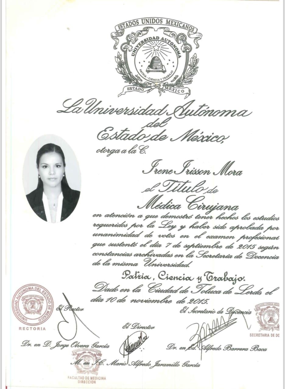 Doc Irene te conozco desde tu internado y residencia y cabe mencionar que eres una excelente médico muy capacitada y actualizada en medicina .Es un placer ser tu paciente y me tranquiliza lo bien médico que eres y puedo confiar en ti mi salud Gracias