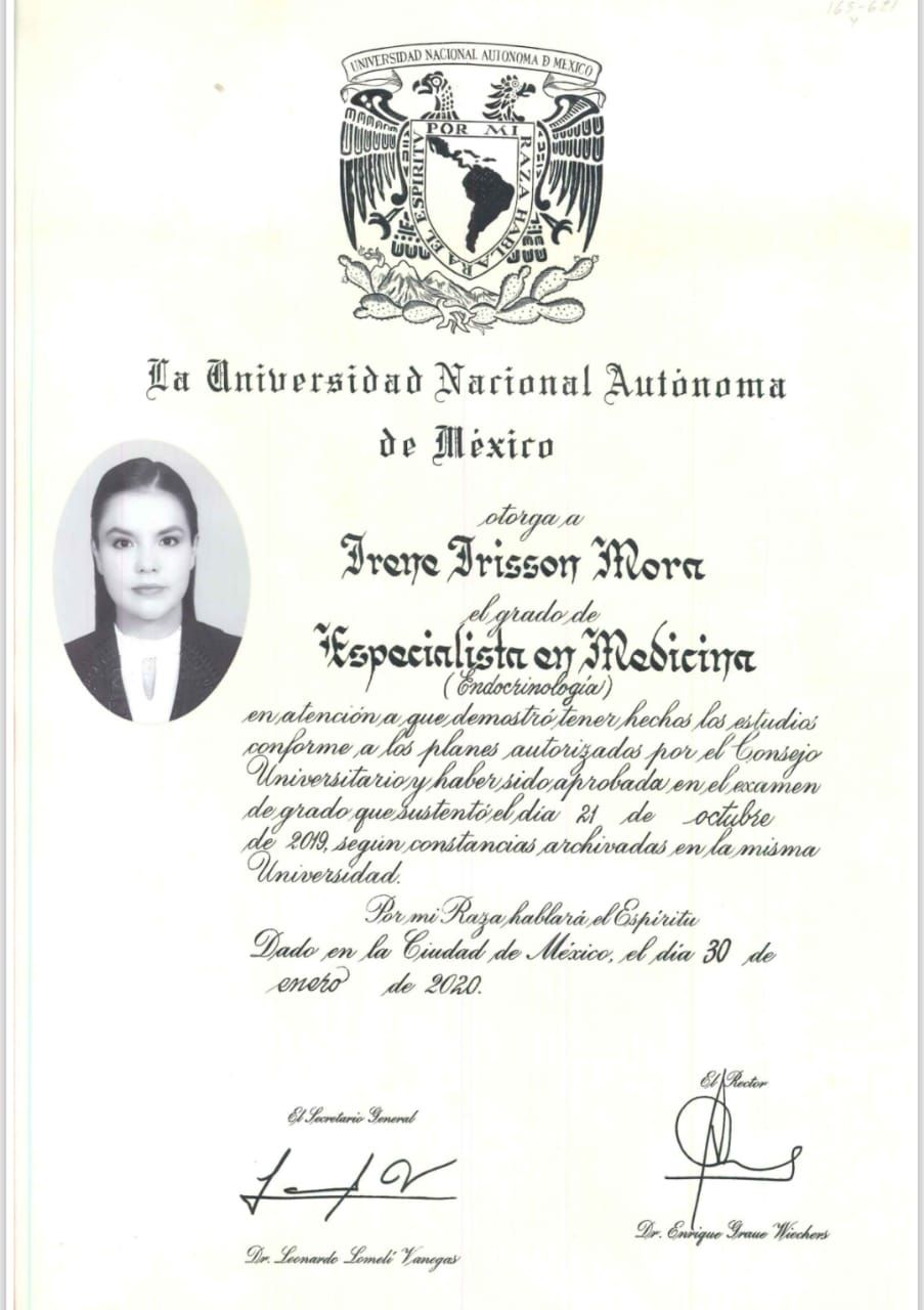 - Subespecilidad Endocrinología en el Hospital de Especialidades del Centro Médico Nacional Siglo XXI en Ciudad de México, Avalada por la UNAM (2018-2020)